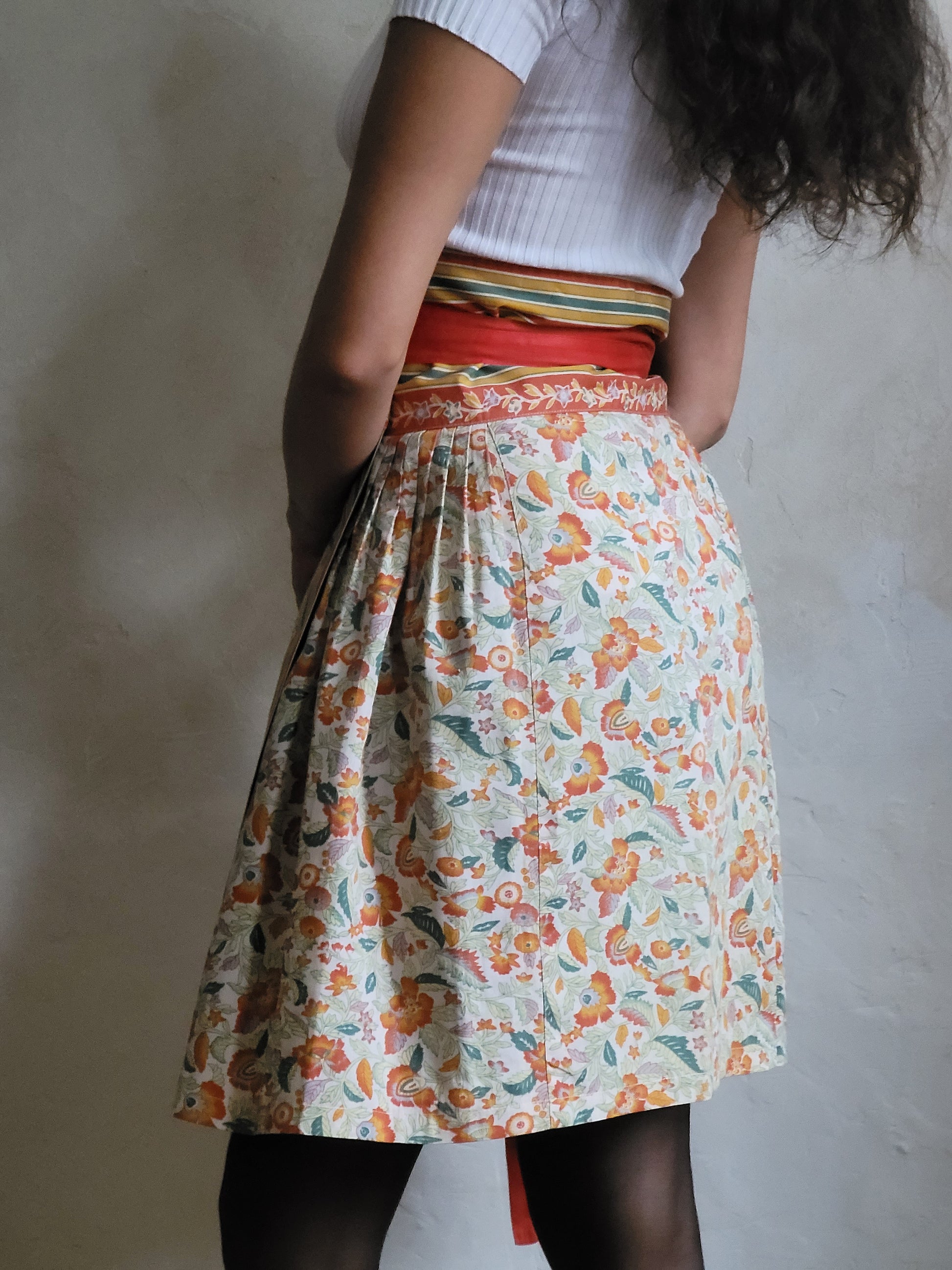 Rare Kenzo Jap label skirt from the summer collection. Pieces from this era of Kenzo are extraordinary: the print is so peculiar, the placement of the stripes next to the florals, which themselves clearly have a Japanese design aesthetic, is very Kenzo - juxtaposing different elements together.