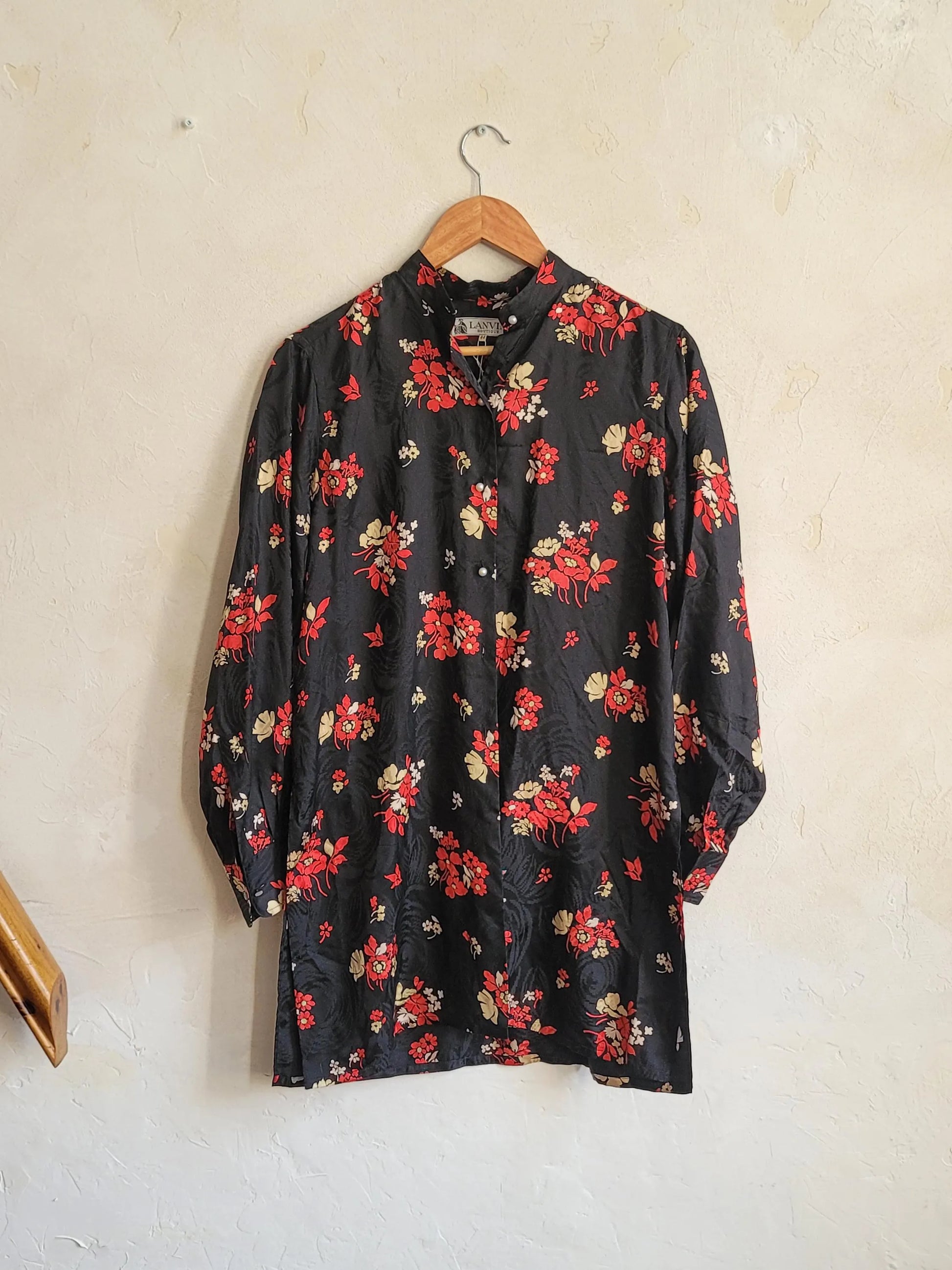 Lanvin Boutique Jacquard Silk Black Tunic early 1970s