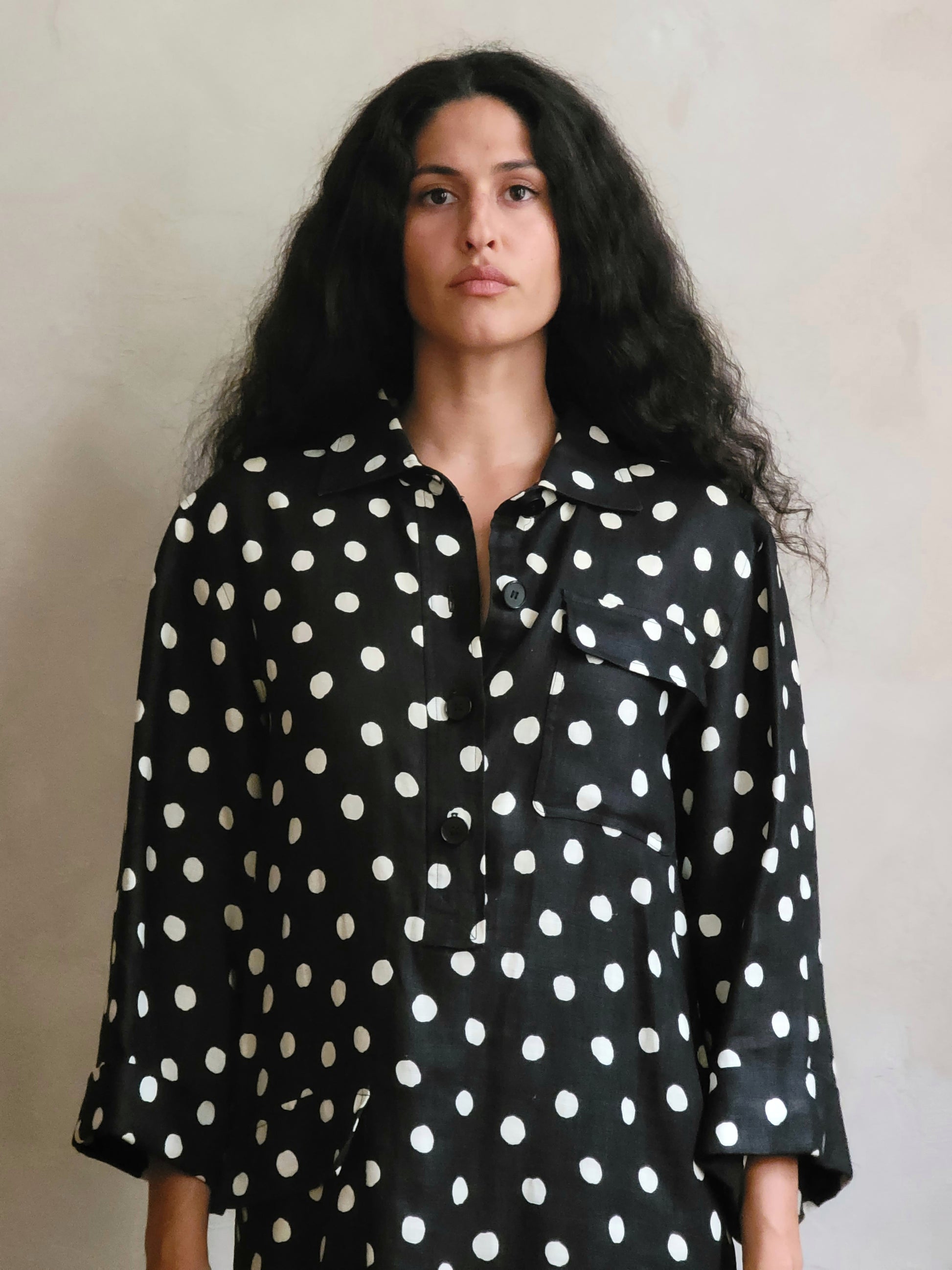 Typically Rive Gauche of the 1980s, black and white polka dots.